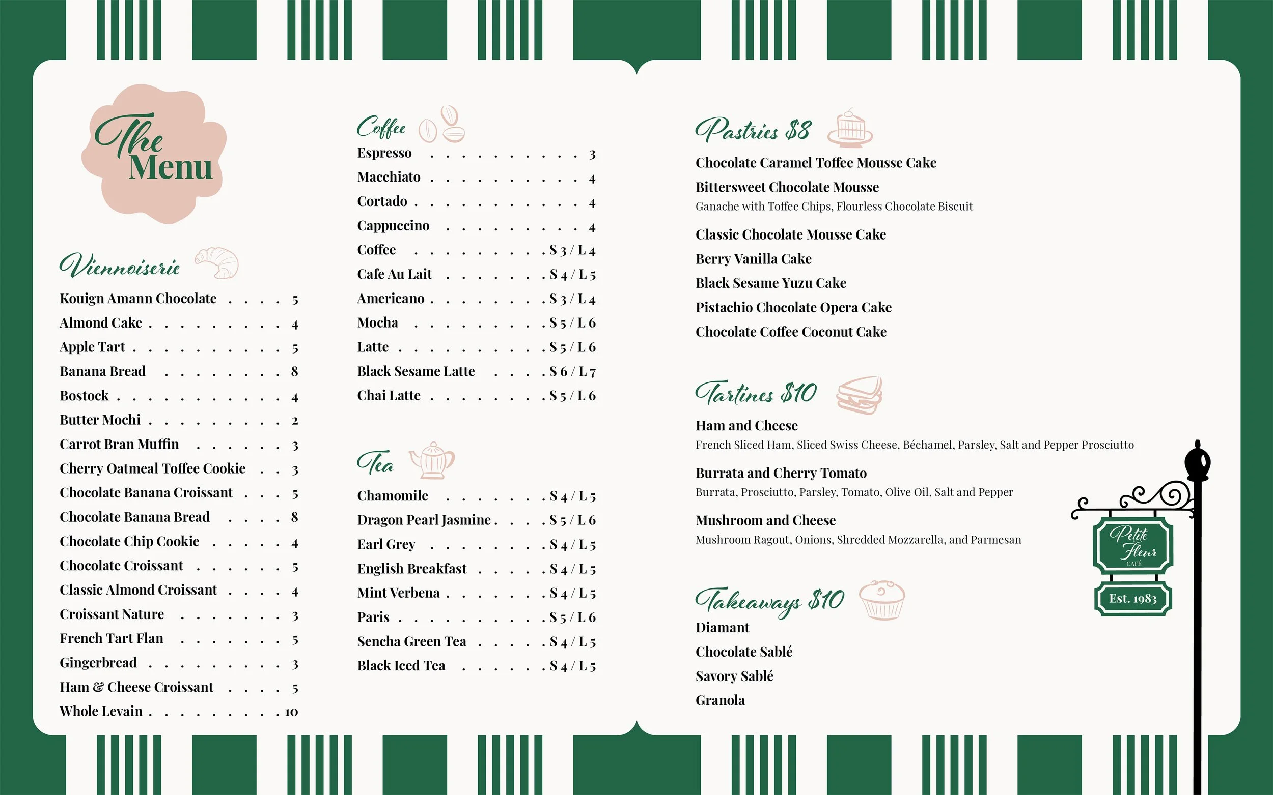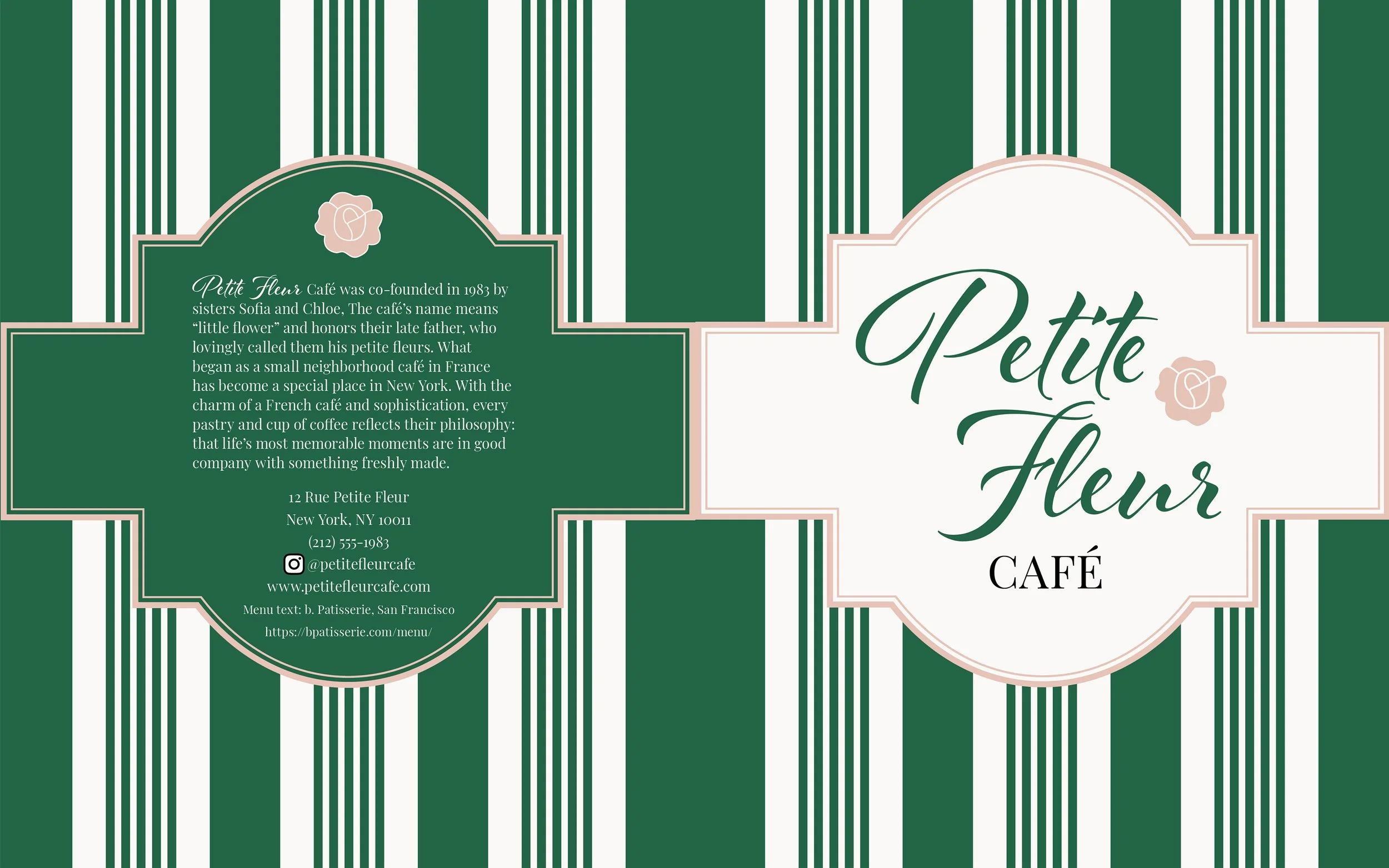 Petite Fleur Café is a Parisian-inspired brunch concept that blends timeless French elegance with modern simplicity. Imagined as a refined yet approachable neighborhood café near New York’s Museum of Modern Art, the brand captures a warm, inviting atmosphere rooted in classic French café culture.